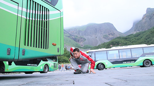 维修技师程广胜记忆犹新地说:“今年1月份,接到主峰清雪车在大S弯处液压系统损坏电话,车辆打不着火,当时长白山的零下气温在30多度以下,我们赶到维修地时,清雪车下都是雪,几名维修人员用铁锹先把车辆下面的积雪清理干净,顶风冒雪,躺在雪地上,抢修了将近2个多小时,经过奋战,全力保持清雪车正常运营,确保主峰道路畅通,待维修过后,抢修的5名工作人员脸,手全部冻僵了!”