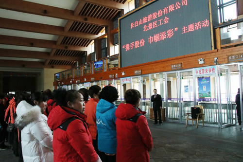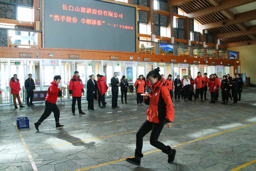 为庆祝第108个“三八”国际劳动妇女节,展现女性职工风采,3月7日下午,长白山旅游股份有限公司北景区工会在长白山北景区新山门,开展以“携手股份,巾帼添彩”为主题的趣味庆祝活动,共有80余名女职工参加了活动。