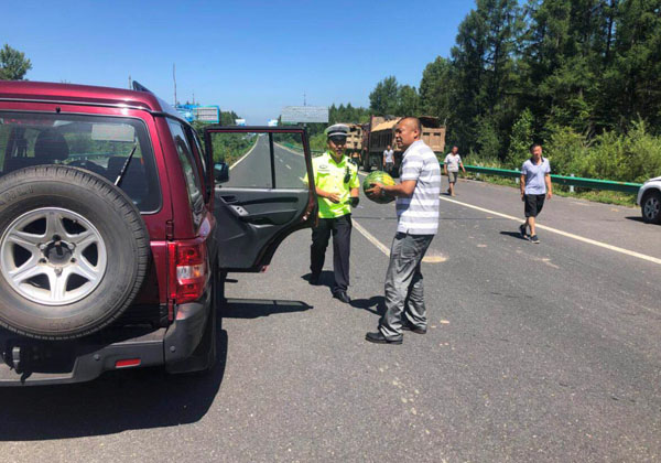 7月21日,天池企业公司副总经理秦伟斌到一线送清凉,慰问烈日下工作的一线员工。