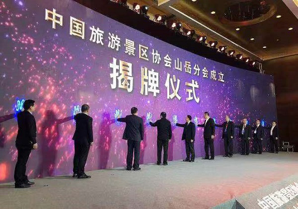 山岳分会成立大会揭牌仪式暨黄山第三届旅游投资发展高峰论坛于12月22日举行,中国旅游景区协会会长姚军、秘书长霍建军、监事长阚跃,新任景区协会山岳分会名誉理事长黎志,理事长章德辉,副理事长许卫军、安国柱等出席会议,并为山岳分会揭牌。